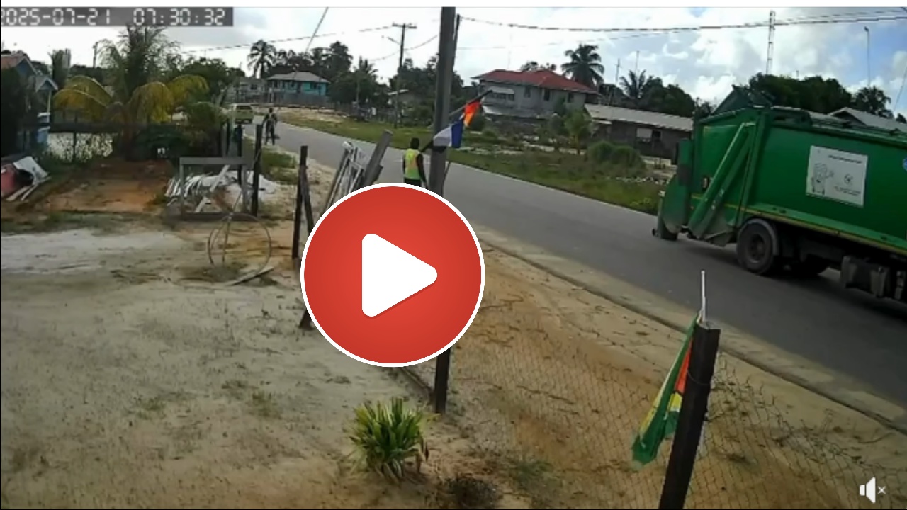 In the video circulating on social media, the garbage truck is seen stopped to attend to some garbage in a barrel placed at the side of the road. The child, who was standing near the truck, suddenly ran across the road, where she was struck by an oncoming vehicle.