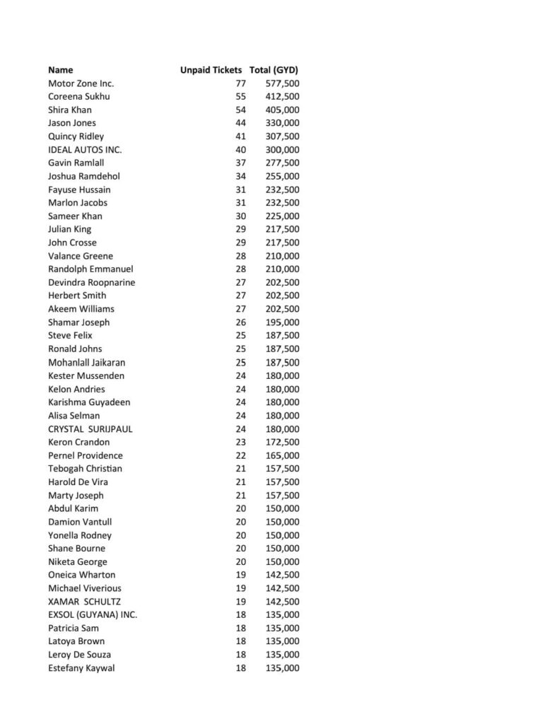 Below are the names of top offenders who will face court action if they do not immediately pay all outstanding tickets.