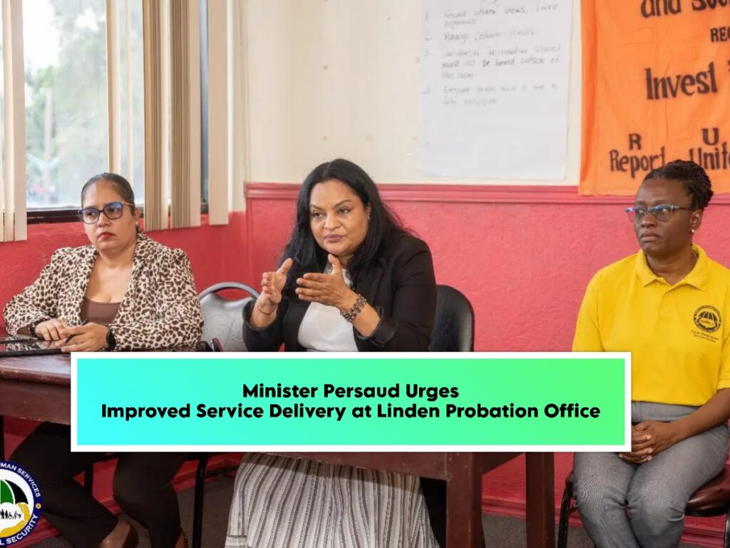 In a decisive early morning meeting on Monday, Minister of Human Services and Social Security, Hon. Dr. Vindhya Persaud, conveyed a strong message to staff at the Linden Probation Office regarding the urgent need for enhanced service delivery across the Ministry’s offices nationwide.