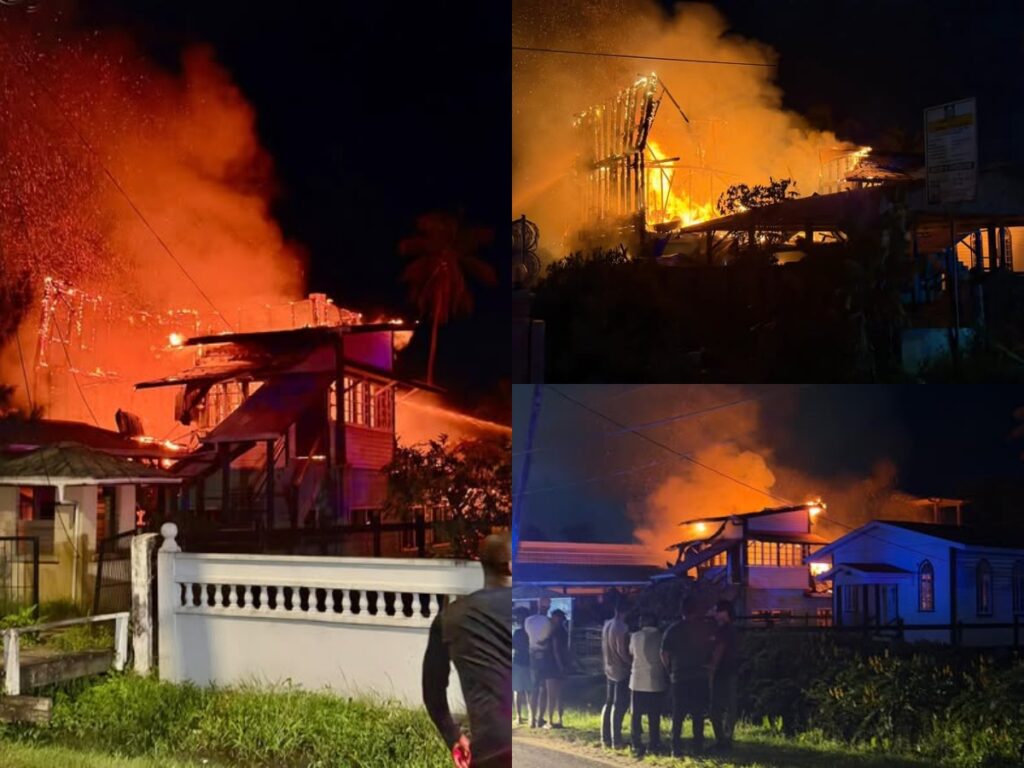 The cause of the blaze remains unknown. Firefighters from the New Amsterdam Fire Service responded swiftly to the scene; however, by the time they arrived, the building was already fully engulfed in flames.