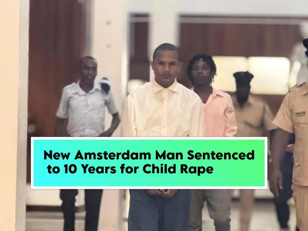 Justice Sandil Kissoon sentenced Anthony Patterson to 10 years in prison for raping a child under the age of 16. Patterson, from New Amsterdam, was arrested on April 21, 2024, after reportedly luring a 12-year-old girl into his home and assaulting her. He had pleaded guilty to the charge and was remanded at the New Amsterdam Prison awaiting trial.