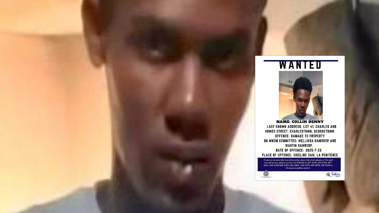 According to an official police bulletin issued by the Corporate Communications Unit, Denny’s last known address is Lot 41, Charles and Howes Street, Charlestown, Georgetown. He is wanted for allegedly committing damage to property belonging to Mellissa Ramroop and Martin Ramroop.