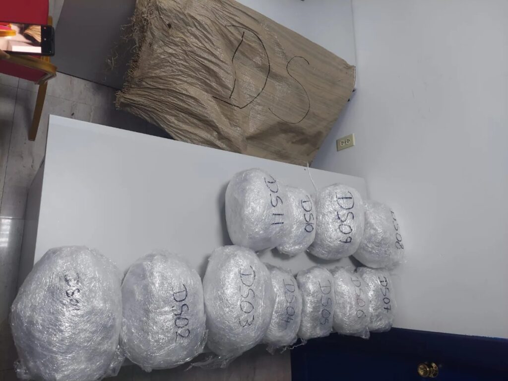 According to a release from Police Headquarters, the vehicle was intercepted around 11:15 AM. Officers found a ‘salt bag’ containing several bulky parcels filled with leaves, seeds, and stems suspected to be cannabis inside the vehicle.