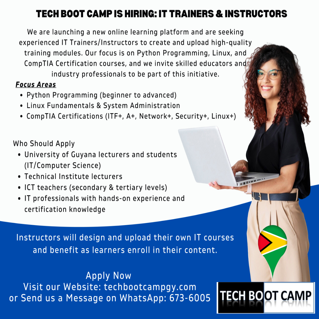 - Share practical, job-ready IT skills with learners across Guyana and beyond