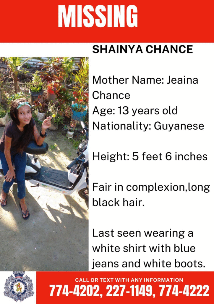 Authorities are seeking assistance from the public in locating 13-year-old Shainya Chance, who has been reported missing. Shainya, the daughter of Jeaina Chance, was last seen wearing a white shirt, blue jeans, and white boots.