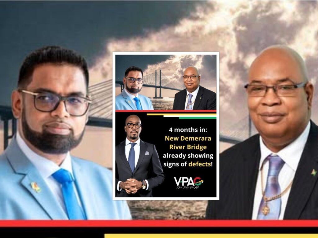 The Vigilant Political Action Committee (VPAC) has raised alarms regarding the Bharrat Jagdeo Demerara River Bridge, citing visible signs of defects less than four months after its opening. Issues such as surface depressions, uneven roadway transitions, and other indications of premature distress have emerged, prompting serious concerns about the quality of construction and adherence to engineering standards.
