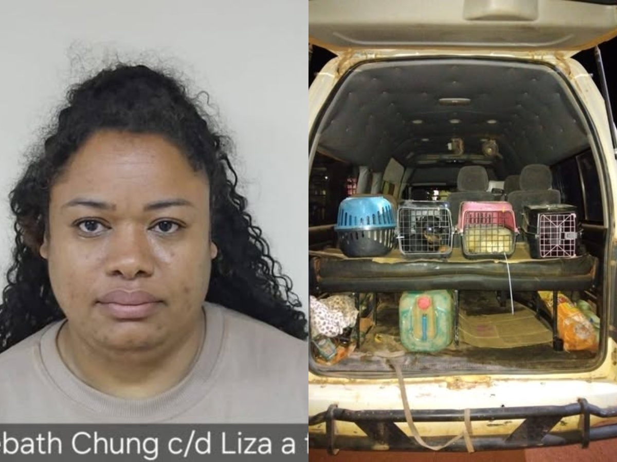 Elizebath Chung, also known as “Liza,” a 40-year-old chef from Albertown and Alexander Village, was arrested on November 22, 2025, at the Bina Hill Police Checkpoint in Region 9. She was found importing ten dogs without the necessary permit.